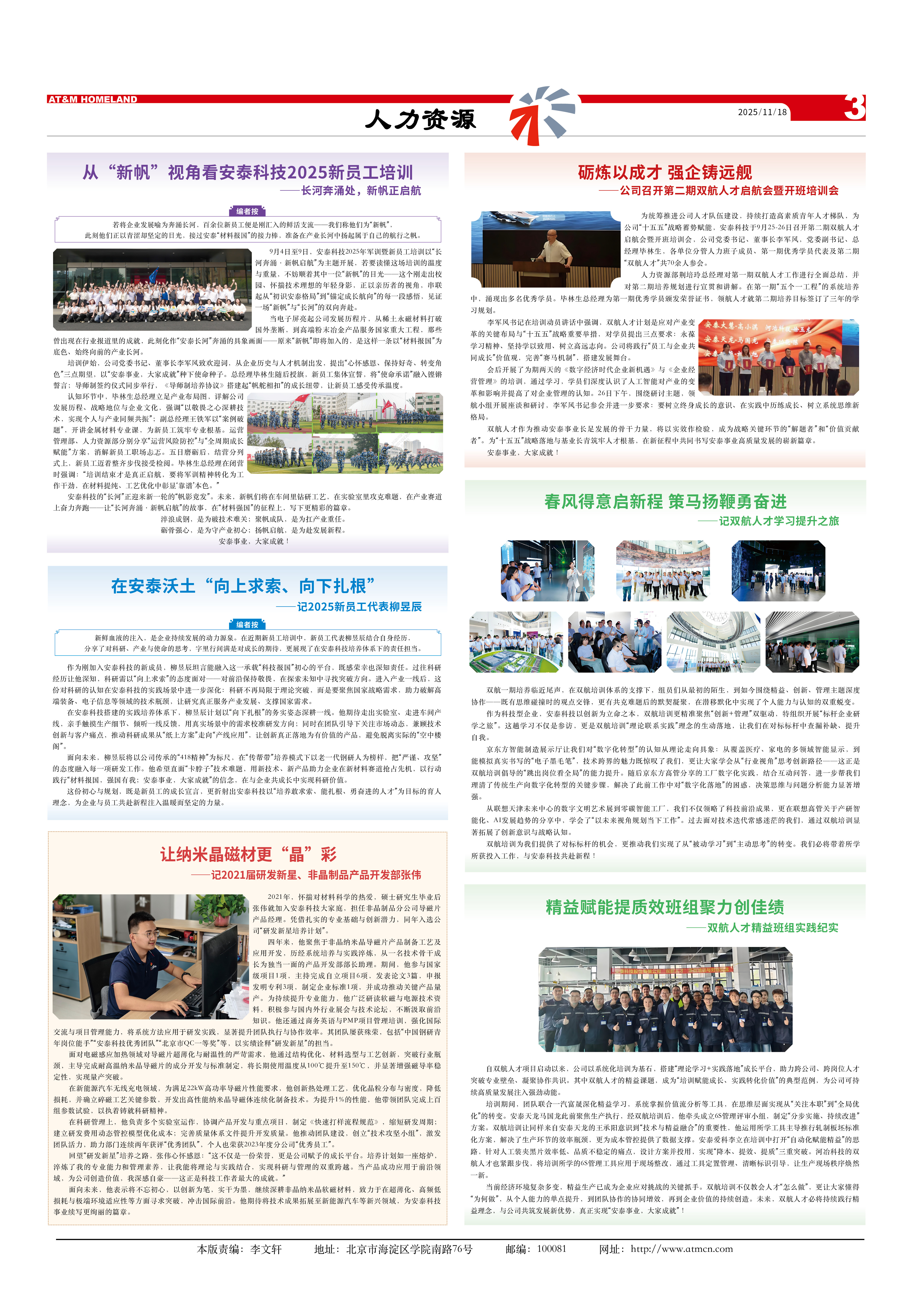 編者按:若將企業(yè)發(fā)展喻為奔涌長河,百余位新員工便是剛匯入的鮮活支流——我們稱他們?yōu)椤靶路保丝趟麄冋郧酀瓍s堅定的目光,接過安泰“材料報國”的接力棒,準備在產業(yè)長河中揚起屬于自己的航行之帆。