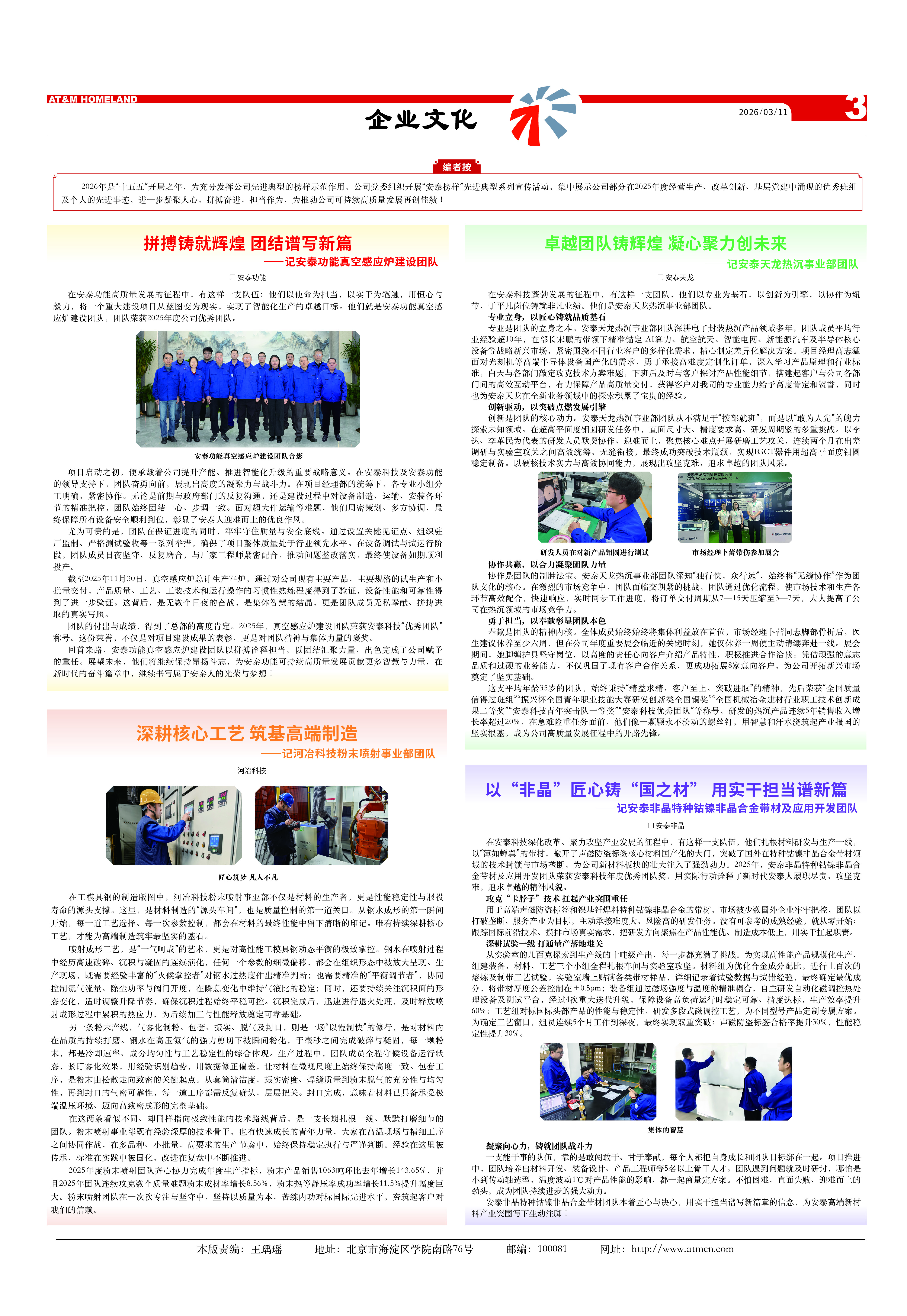 2026年是“十五五”開局之年,為充分發揮公司先進典型的榜樣示范作用,公司黨委組織開展“安泰榜樣”先進典型系列宣傳活動,集中展示公司部分在2025年度經營生產、改革創新、基層黨建中涌現的優秀班組及個人的先進事跡,進一步凝聚人心、拼搏奮進、擔當作為,為推動公司可持續高質量發展再創佳績!