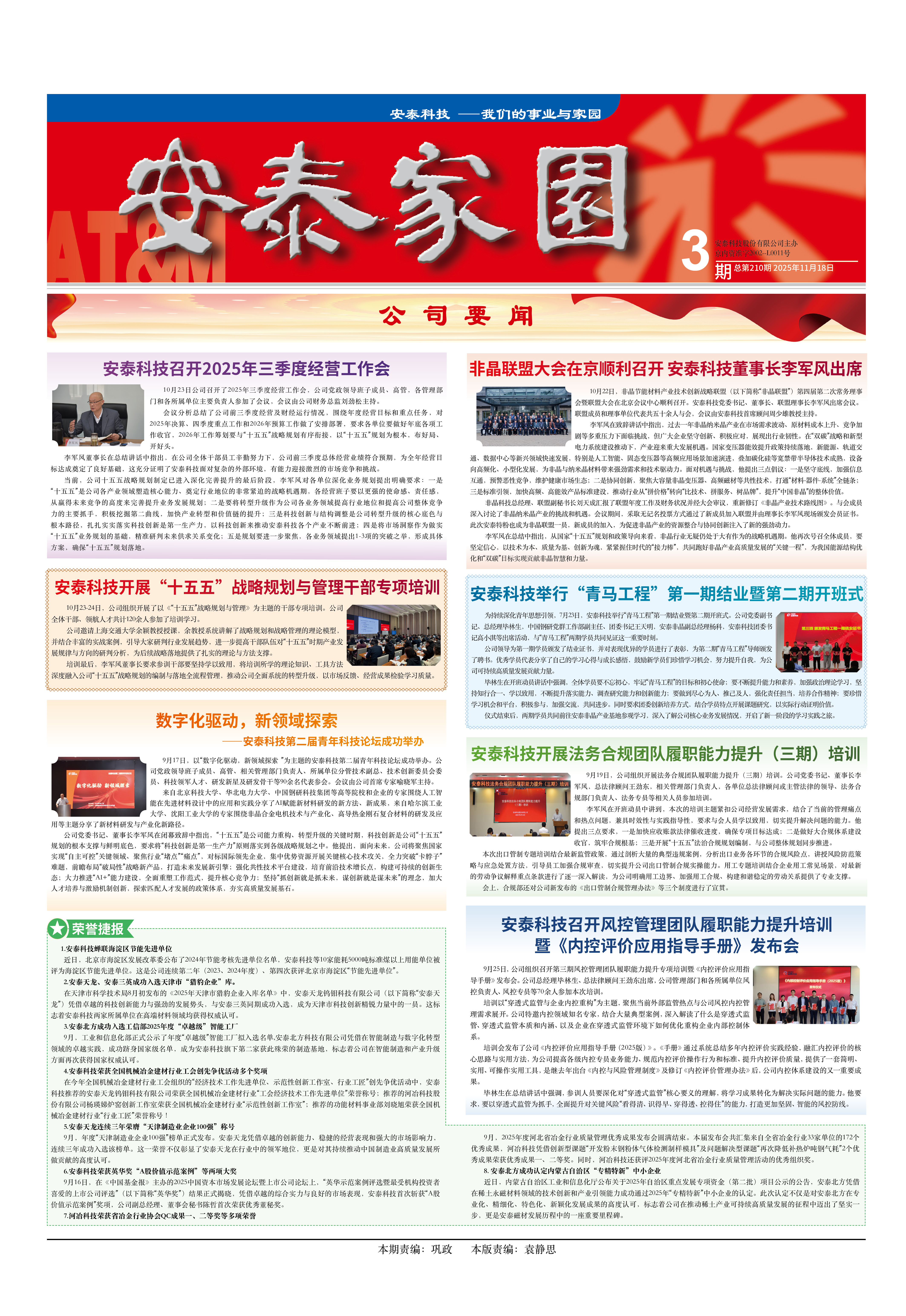 10月23日公司召開了2025年三季度經營工作會,公司黨政領導班子成員、高管,各管理部門和各所屬單位主要負責人參加了會議,會議由公司財務總監劉勁松主持。